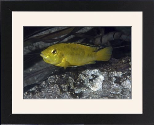 14 x11 Framed Print, Black Satin Frame Off-White Digital Mat. showing PM-9912 Lake Malawi Cichlid. PM-9912 Lake Malawi Cichlid Africa Lapidochromis caeruleus aquarium fish, captive breeding Pat Morris Please note that prints are for personal display purposes only and may not be reproduced in anyway. prints ardea 44 (0) 20 8672 2067 . Chosen by Ardea Wildlife Pets. 14 x11 wooden frame with digital mat and RA4 print. Finished back including